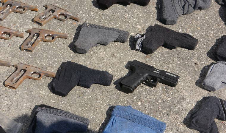 Bunun üzerine özel harekat polislerinin de desteğiyle belirlenen adrese operasyon düzenleyen ekipler, C.K., R.K. ve Y.K.’yi gözaltına alırken, yaptığı aramalarda tek tek çoraplara sarılmış 40 tabanca, bin 77 fişek ile yapım aşamasında olduğu değerlendirilen 6 tabanca ele geçirdi.