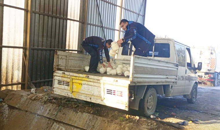 3 kilogramlık bidonlar içerisinde son kullanma tarihi ve menşei belli olmayan, etiketsiz peynirlere el konulurken, sağlığı tehdit eden ürünler Tarsus Belediyesi Temizlik İşleri Müdürlüğünde imha edildi.