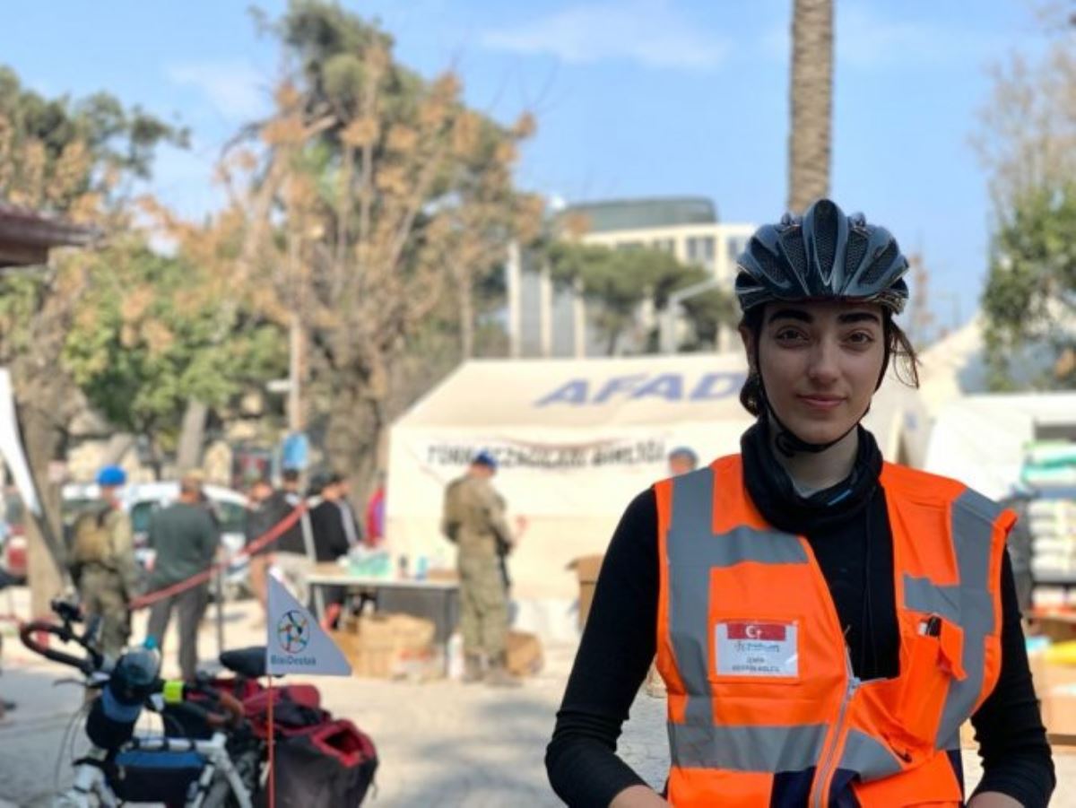 Merkez üssü Kahramanmaraş olan ve 11 şehirde yıkıma yol açan depremlerde, 44 bini aşkın kişi yaşamını yitirdi. Deprem felaketinin ardından Türkiye tek yürek olarak bölgeye yardım ulaştırmak için seferber oldu. Uzun süredir bisiklet sporuyla ilgilenen, İzmir Ekonomi Üniversitesi (İEÜ) Fen-Edebiyat Fakültesi Fizik Bölümü 4'üncü sınıf öğrencisi Berfin Kolcu da depremin ardından Hatay'a giderek afetzedelere yardım edebilmek için harekete geçti. Genç öğrenci, bisikletiyle yüzlerce kişiye erzak, battaniye ve giysi gibi çok sayıda yardım malzemesi ulaştırdı. Depremin dördüncü günü ulaştığı Hatay'da 5 gün kalıp İzmir'e dönen Kolcu, geçtiğimiz perşembe ikinci kez aynı bölgeye gitti. Şu anda Hatay'da bulunan Kolcu, "Burada tanık olduğum acıları, insanların yaşadığı yıkım ve çaresizliği hiçbir zaman unutmayacağım. Umarım bir daha böylesine acı bir afeti yaşamayız" diye konuştu.