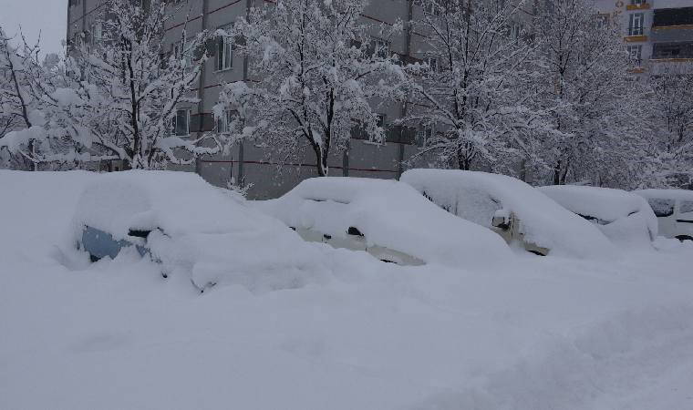 Tek katlı evler ve park halindeki araçların kara gömüldüğü kentte 2 gündür eğitim de ara verildi.