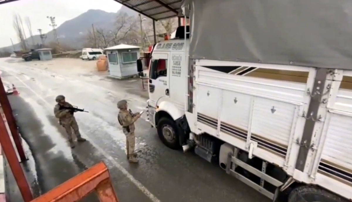Bitlis İl Jandarma Komutanlığı ekipleri kaçak göçmenlere yönelik yaptığı çalışmalar kapsamında kent girişindeki jandarma kontrol noktasında bir TIR'ı durdurarak arama yaptı.