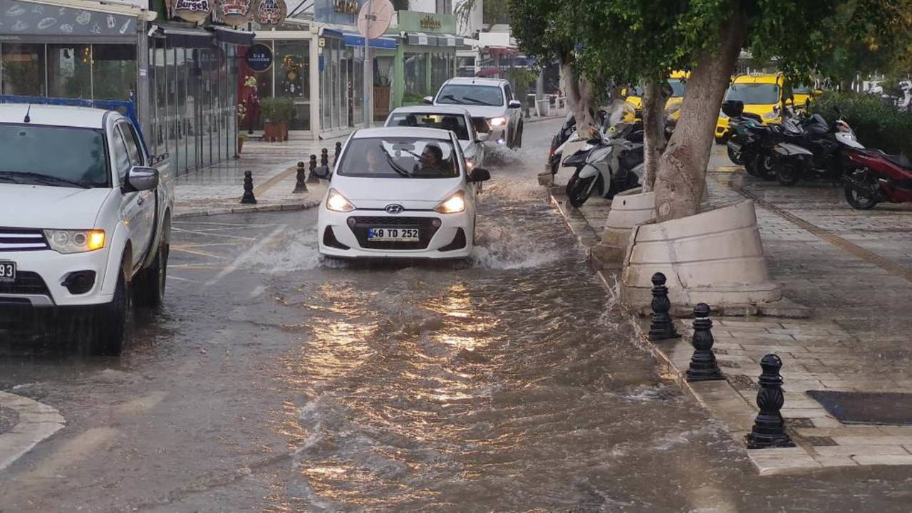 Muğla'nın Bodrum ilçesinde sabah saatlerinden itibaren etkili olan sağanak yağışla Bitez Mahallesi’nden geçen dere taştı.