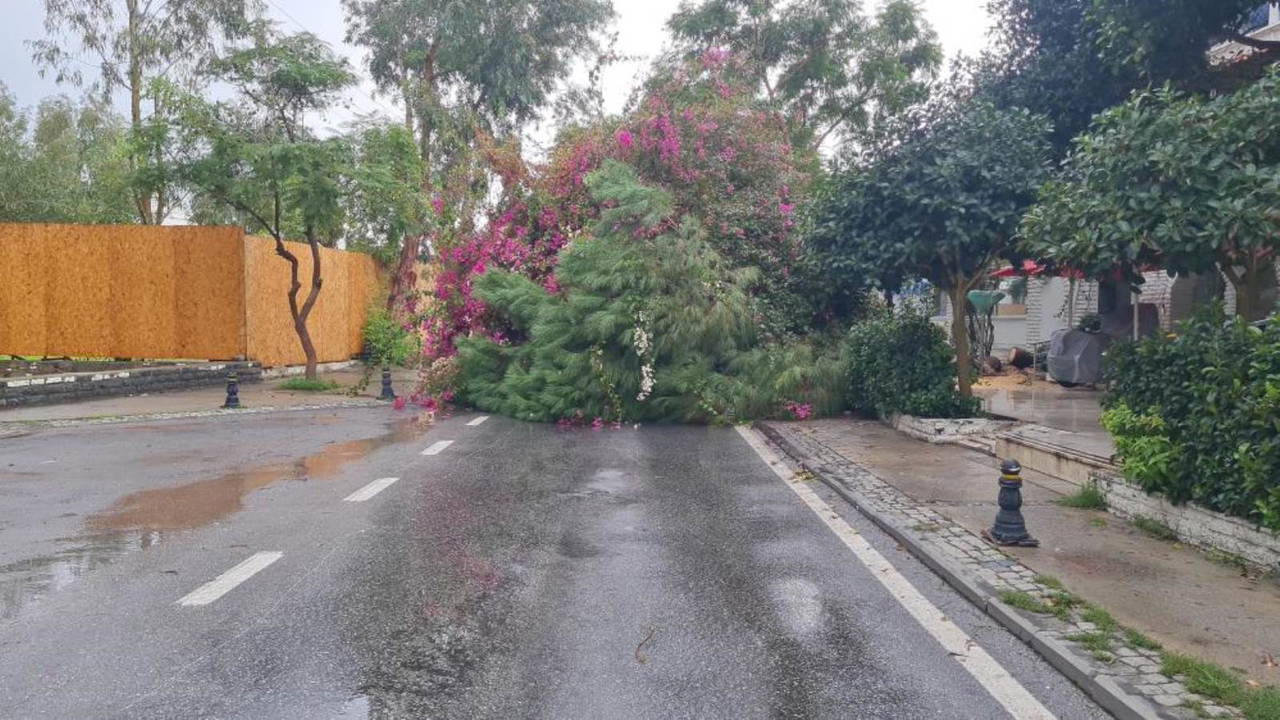 Gümbet Mahallesi’nde devrilen ağaç nedeniyle aydınlatma direği devrildi, yol trafiğe kapandı. Belediye ekipleri devrilen ağacın kaldırılması için çalışma başlattı.