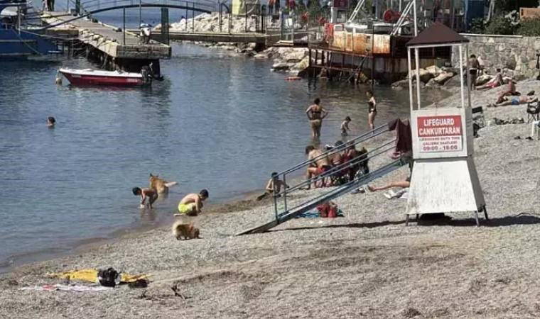 Yerli ve yabancı turistler, yazdan kalma günleri fırsat bilerek denize girip, kumsalda güneşlendi.