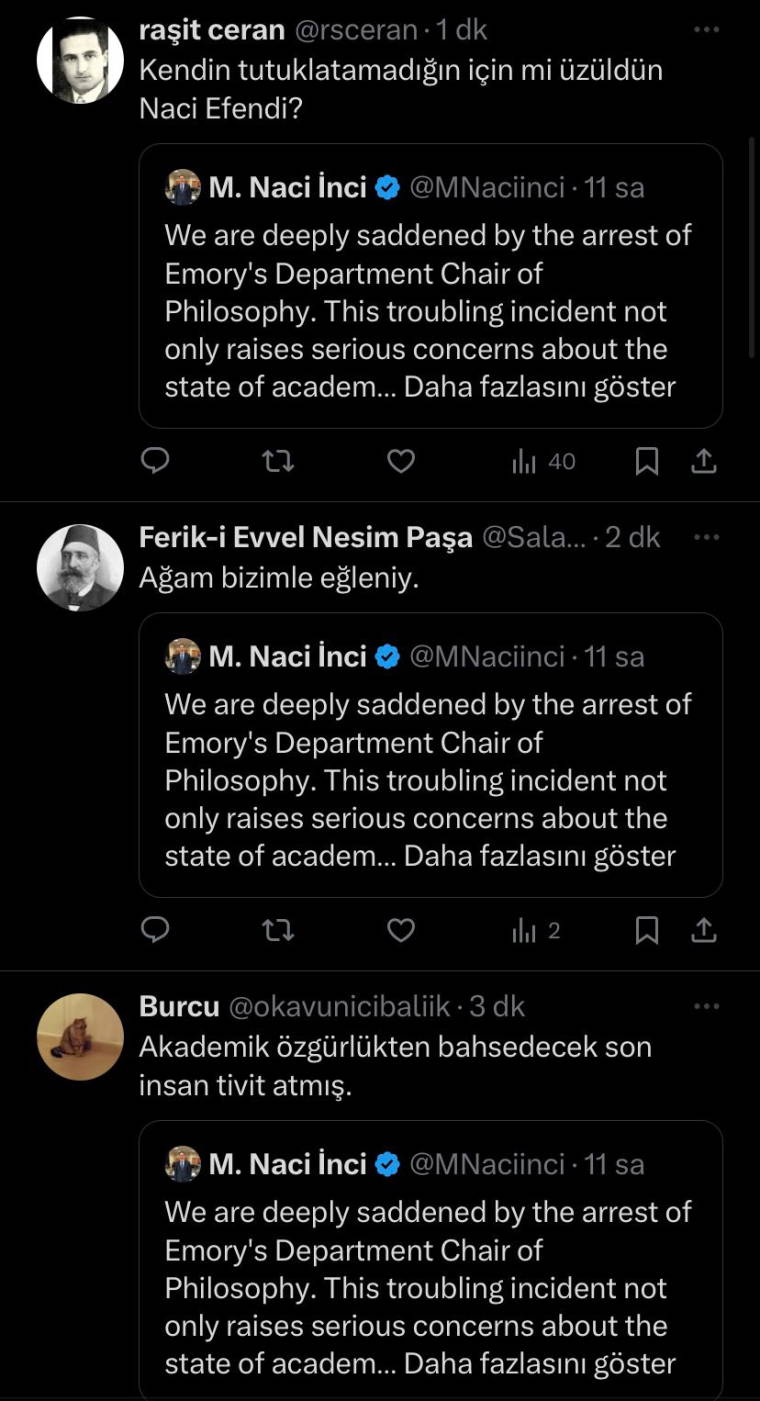 Naci İnci'nin yorumlara kapattığı paylaşım, çok sayıda 'alıntı' aldı. İnci'ye "Bu nasıl bir yüzsüzlük, sen önce kendi üniversitende olanlara bak" şeklinde yorumlar geldi.