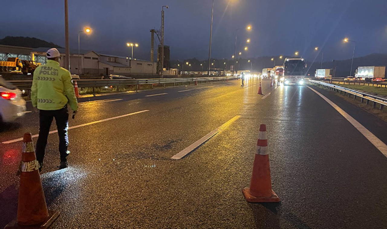 Söz konusu alanda heyelan riski bulunduğunu belirleyen Karayolları ekipleri, Bolu Dağı Tüneli girişinden trafiği kapattı.