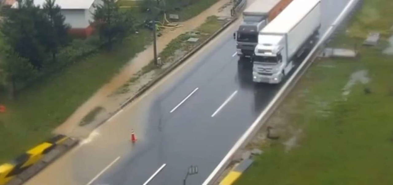 Otoyolun İstanbul istikametindeki sağ şeritte su birikintisi oluştu. Karayolları ve trafik ekipleri önlem amaçlı sağ şeridi kapattı.