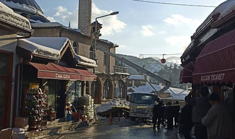 Bolu'nun Göynük ilçesinde Çarşı Cami girişinde bulunan yaklaşık 10 metre uzunluğundaki sundurma, üzerinde biriken karın ağırlığına dayanamayarak ikindi namazı çıkışı çöktü.