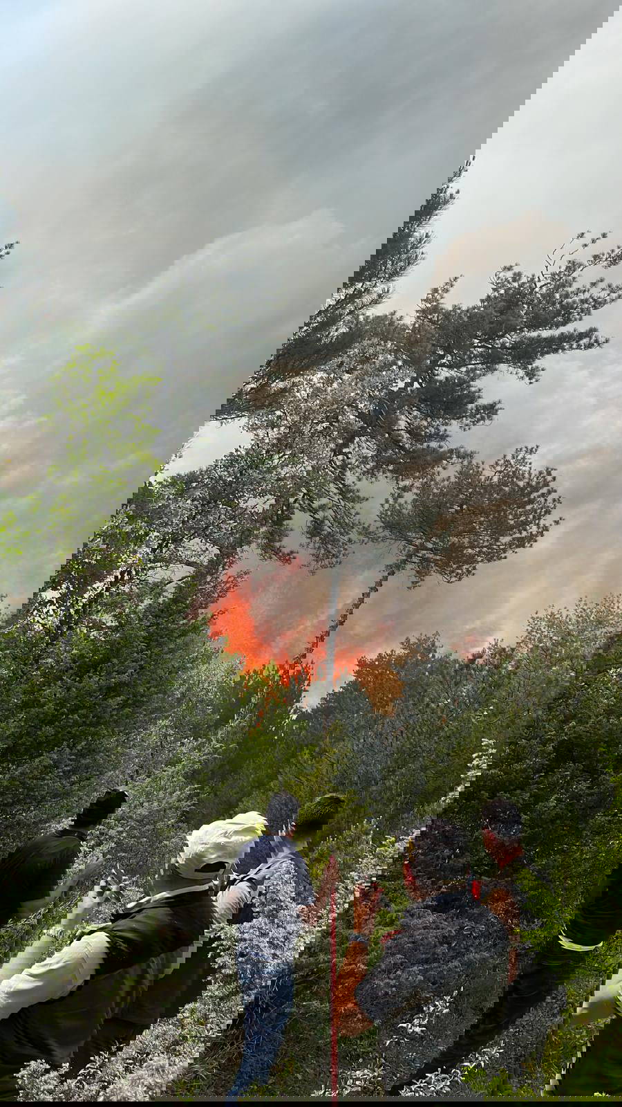 Söndürme çalışmalarına köylüler de tankerlerle destek oldu. Ekiplerin yangına müdahalesi sürüyor.