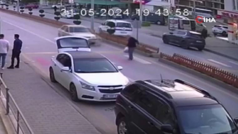 Aracın ön camının patladığı ve yayanın havada takla atarak savrulduğu anbean güvenlik kamerası tarafından kaydedildi.
