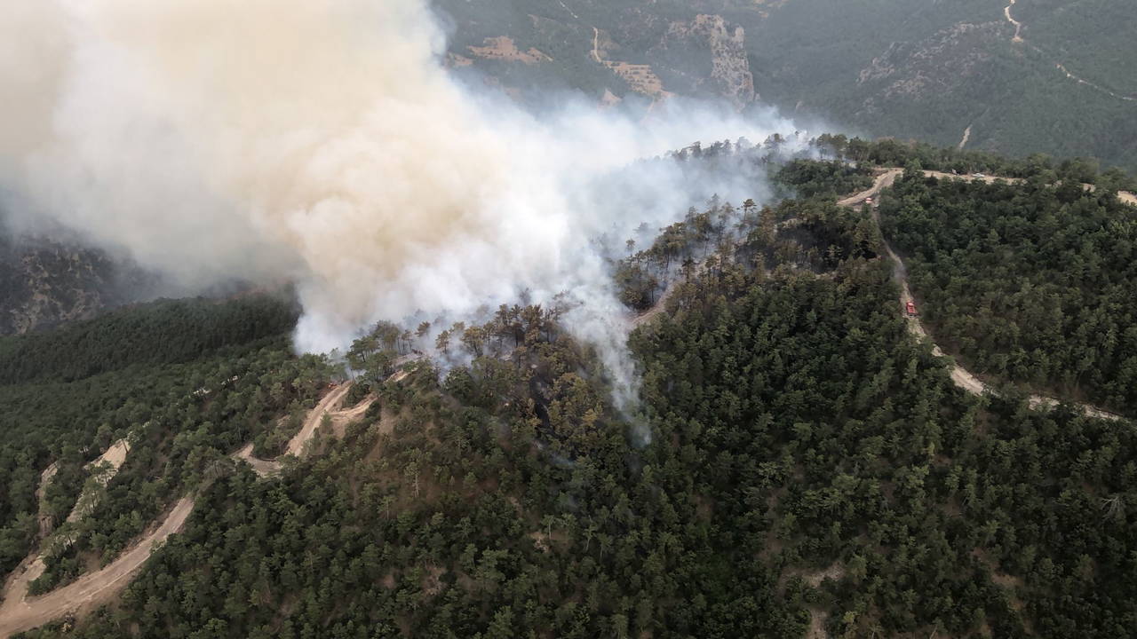 2 farklı alandaki yangınlara 8 helikopter havadan, çok sayıda iş makinesi, arazöz, itfaiye ve personel ile gönüllü yuırttaşlar karadan yangına müdahale ediyor.