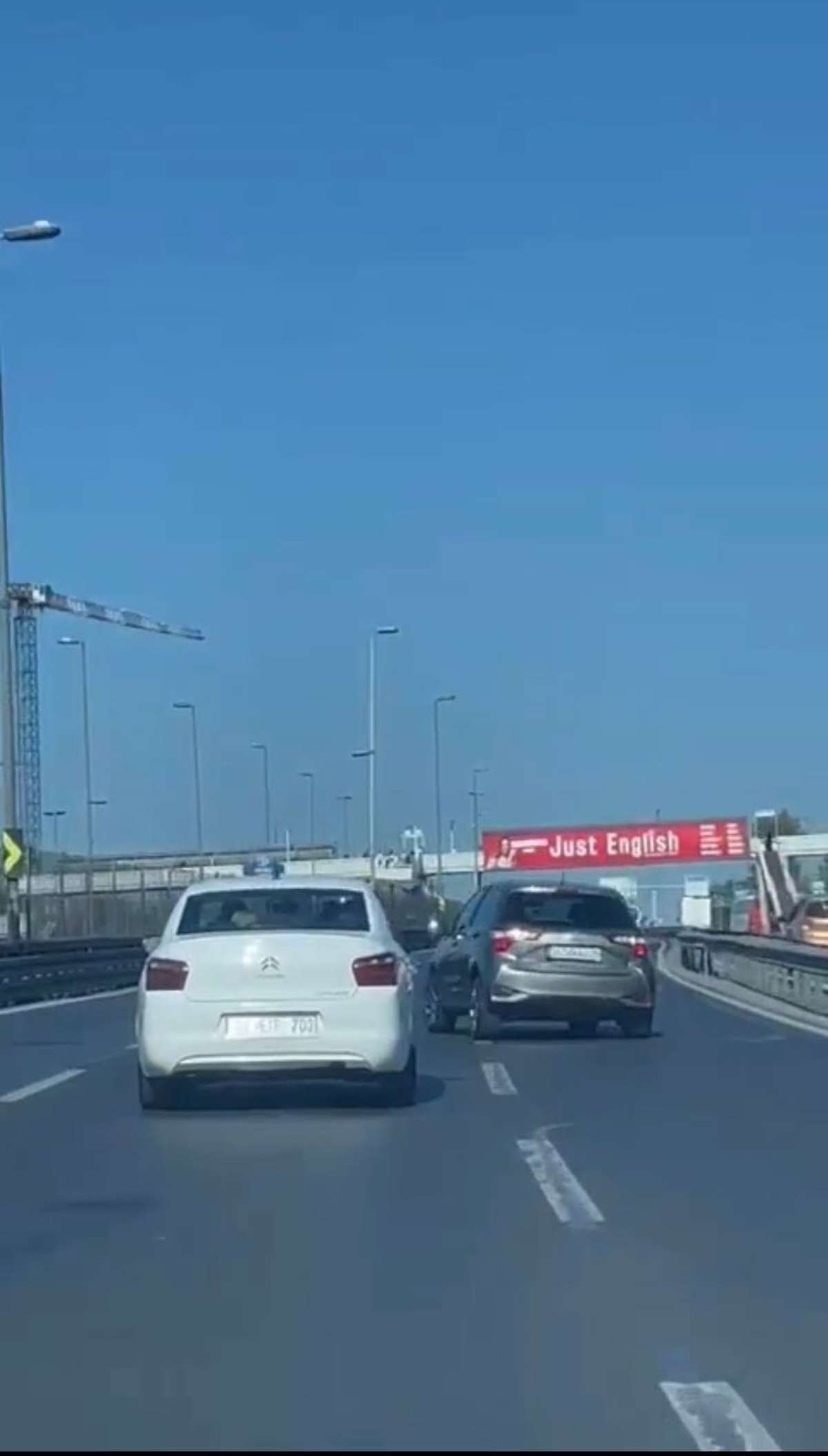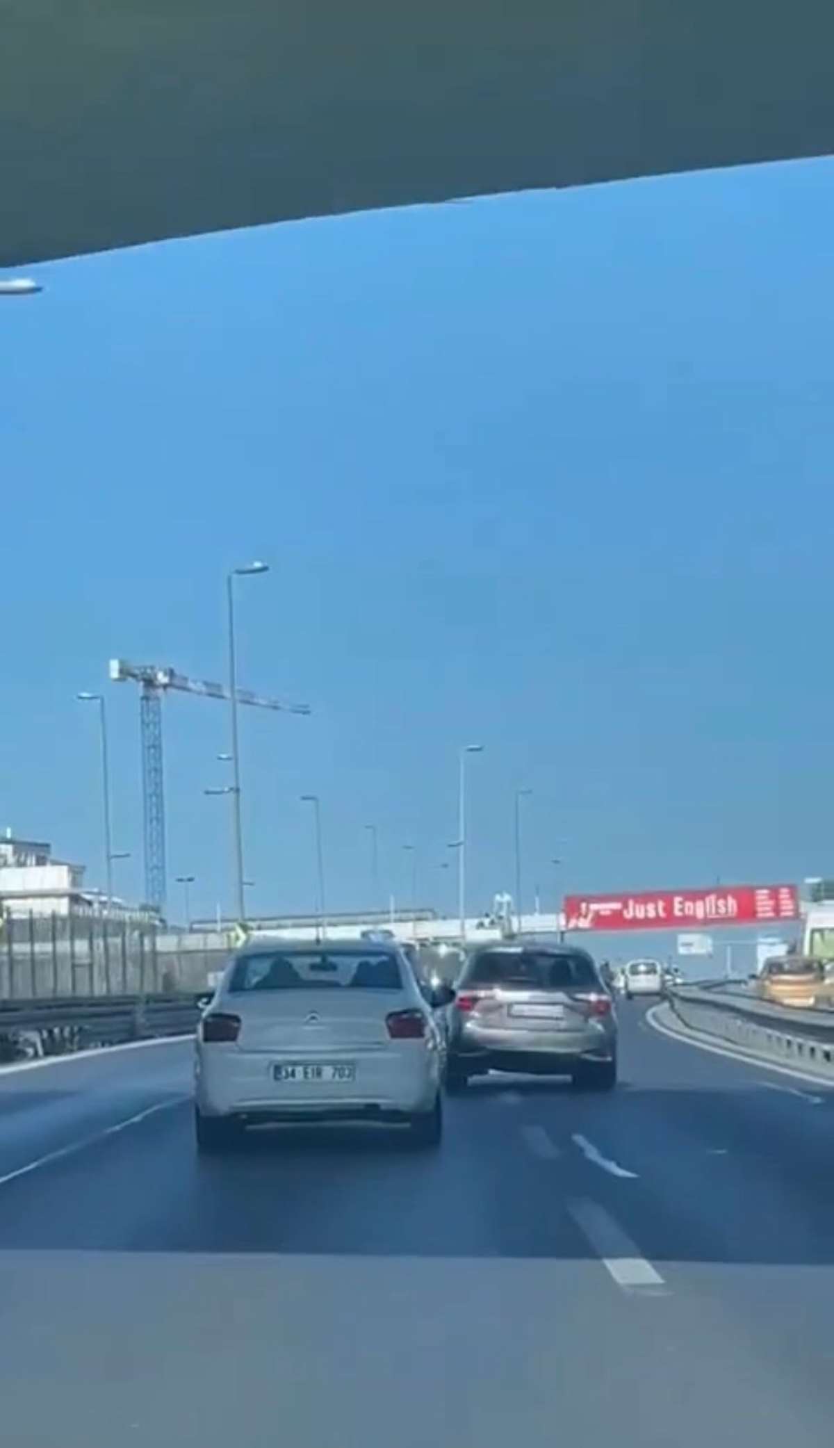 Sürücülerin tehlikeli inatlaşması, arkalarından gelen bir araç sürücüsü tarafından cep telefonu kamerasına saniye saniye kaydedildi.
