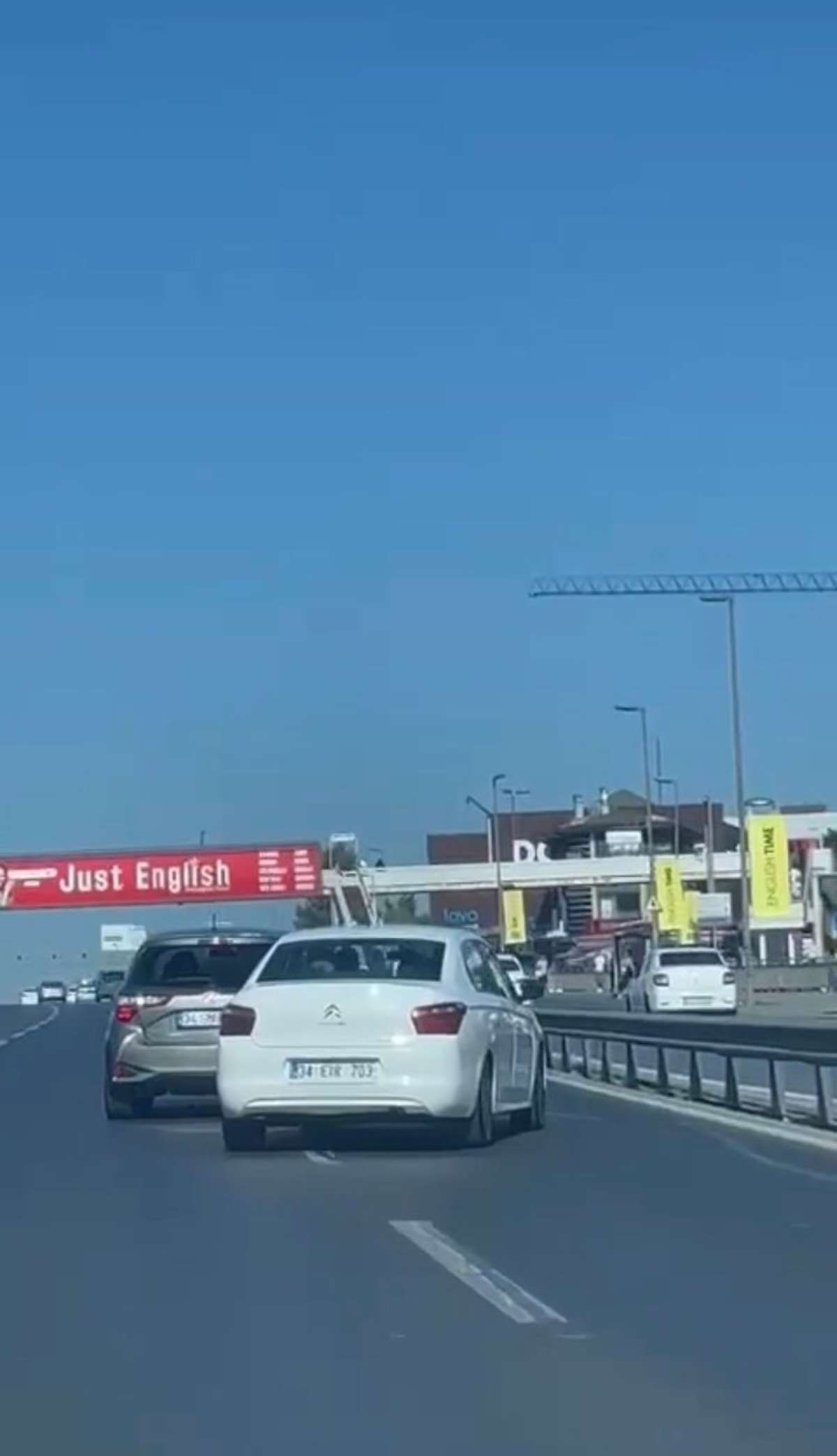 Sürücülerden birisinin aracıyla diğer sürücünün önüne geçerek zikzak çizerek ilerlemesiyle hem kendi canını hem de yoldaki diğer sürücülerin canlarını hiçe saydığı görüldü.