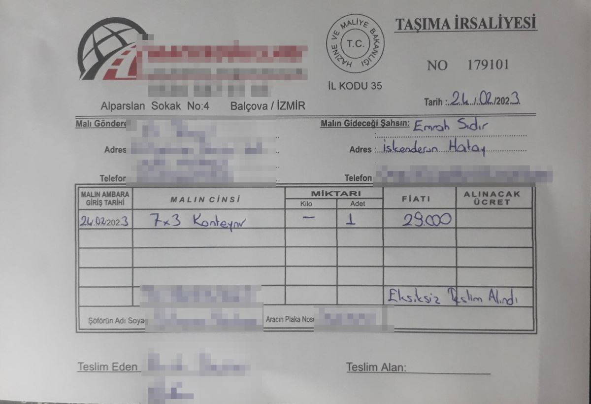 Suç duyurusunda bulunduklarını ifade eden Sıdır, “Karakola giderek ifademi verdim. Delileri ve elimdeki dokümanları teslim ettim. Cumartesi günü iletişimin kesilmesinin ardından bana attıkları video ve irsaliye faturasını sildiler. Fiyatı uygun geldiği için şüphelenmiştim. Diğer firmaların verdiği fiyata göre uygun gelmişti. Bunu sorduğumda ‘Devlet bizlere deprem bölgesine giden konteynerler için teşvik veriyor. Depremzedelere gönderilen her konteyner için teşvik alıyoruz. Diğer firmalar bunu ceplerine atıyor’ dediler” şeklinde konuştu.