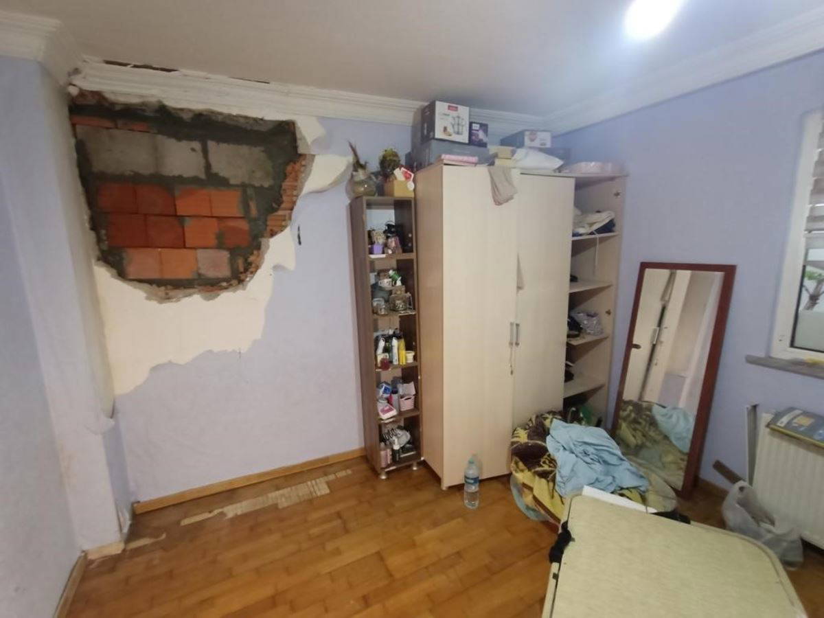 O sırada odasında uzanan kiracı Özlem Uzun, duvarın önüne doğru yıkılması ile büyük bir şok yaşadı. Duvarda olay sonrası yarık oluşurken, binanın kirişleri ise zarar gördü.