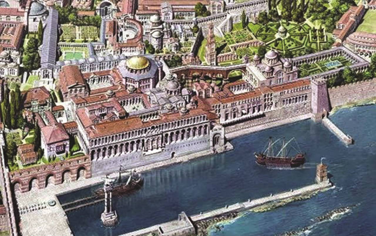 Ülker, kazılar sırasında, imparatorların limandan gelen ziyaretçilerinin saraya geçişini sağlayan bir anıtsal geçiş alanına da ulaştıklarını söylüyor. İmparatorluk merdivenleri, denilen alanda limandan gelen imparatorun resmi ziyaretçiler tarafından kullanılan oldukça büyük ve görkemli sütunlar bulunuyor. Yıkılmış olsa da kalıntıları hâlâ duran sarayın güzel seyir terası üzerinde Adalar’ı, Marmara’yı izleyen İmparator ve konuklarını hayal edebiliyorum.