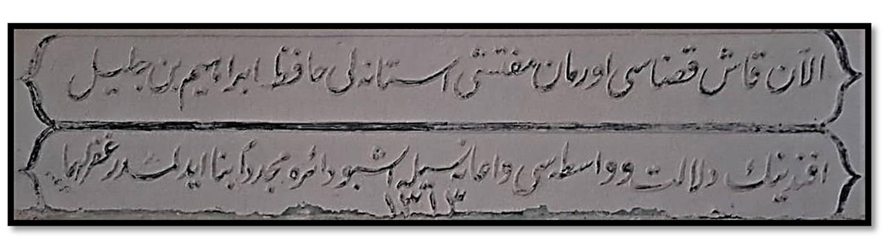 Şadırvandaki kitabede ise “Günümüzde Kaş Kazası Orman Müfettişi (Orman Bölge Şefi) İstanbullu Celil oğlu Hafız İbrahim Efendi’nin öncülük, aracılık ve yardımıyla bu bölüntü yeniden yapılmıştır, babası ve kendisi bağışlansın, 1895" deniliyor.