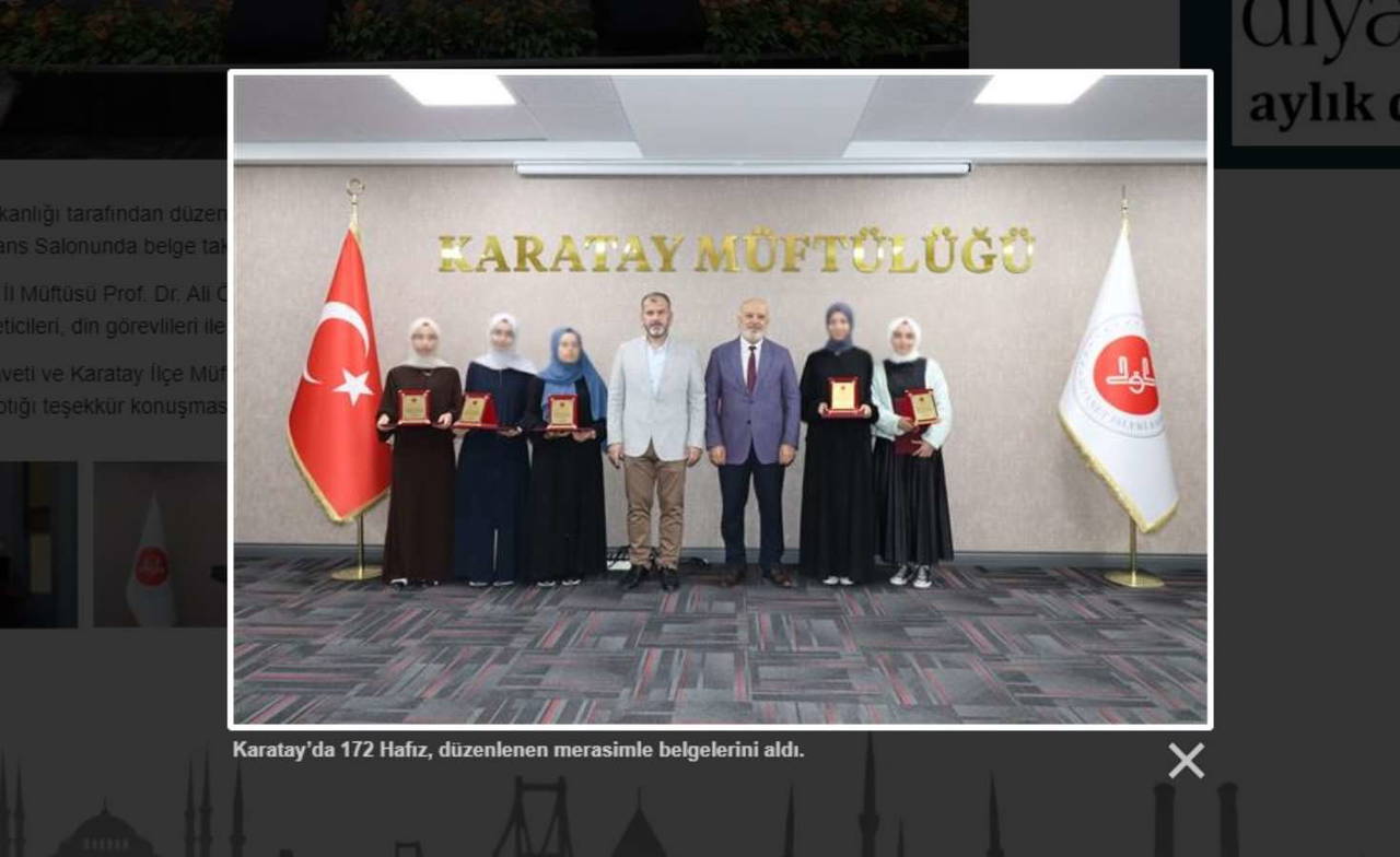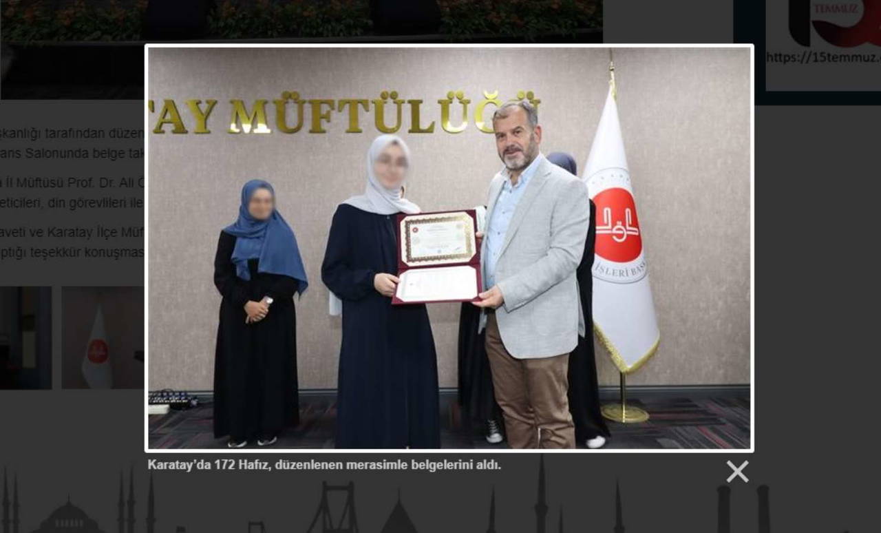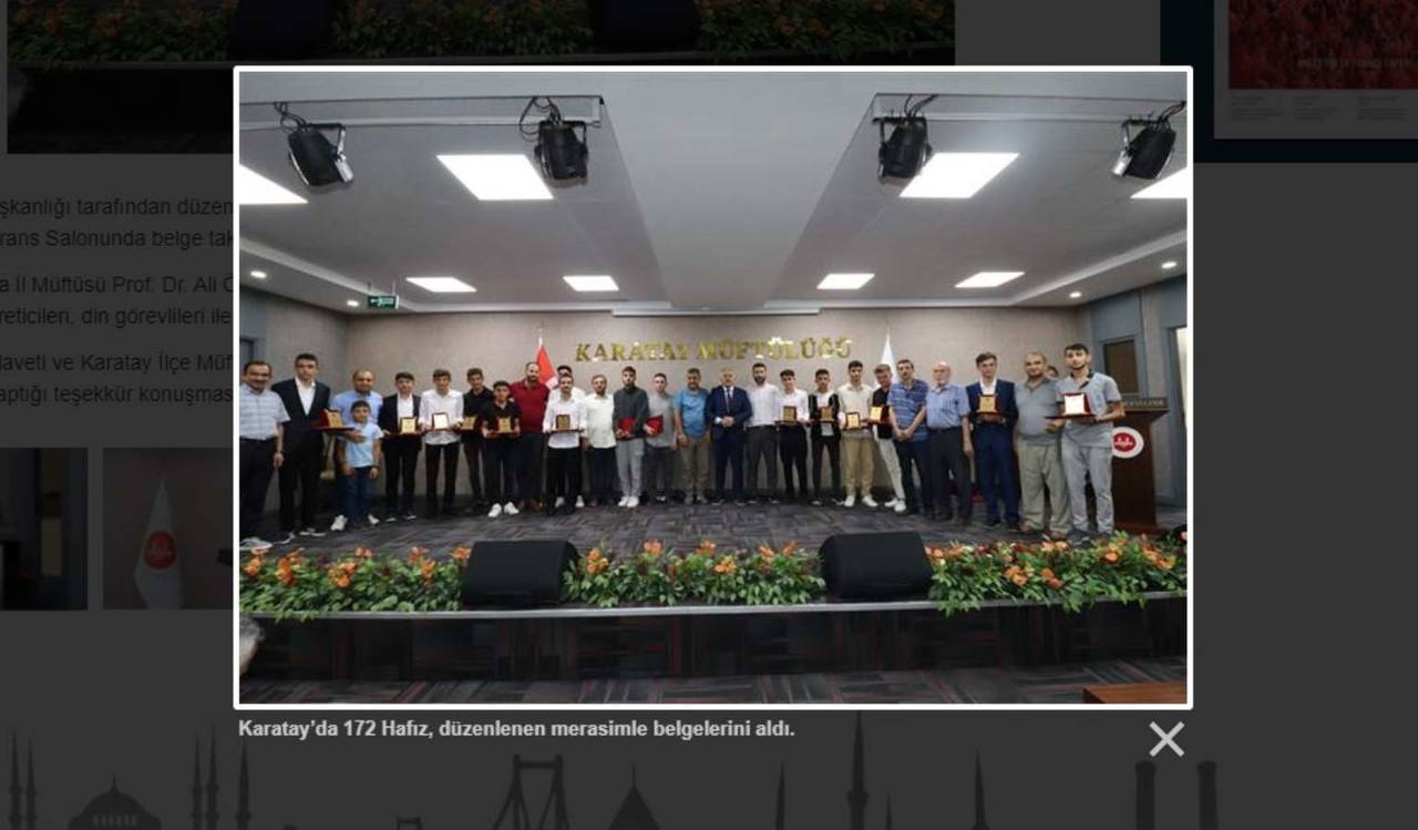 Harcamaları ve 'fetvalarıyla' sık sık tartışılan Diyanet İşleri Başkanlığı tarafından düzenlenen 2023 yılı II. Dönem Hafızlık Tespit Sınavı'nda başarılı olan hafızlara yönelik Karatay İlçe Müftülüğü Konferans Salonu'nda belge takdim programı gerçekleştirildi.