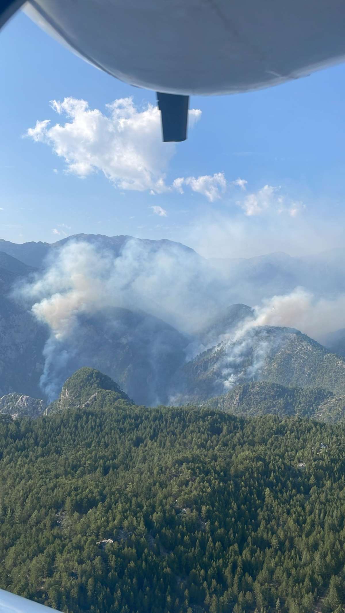 Sarp ve kayalık alanda yayılan alevlere 2 uçak, 11 helikopter, 25 arazöz ve 240 personelle müdahale ediliyor. Araçla ulaşılamayan kanyondaki alevler, kontrol altına alınmaya çalışılıyor.