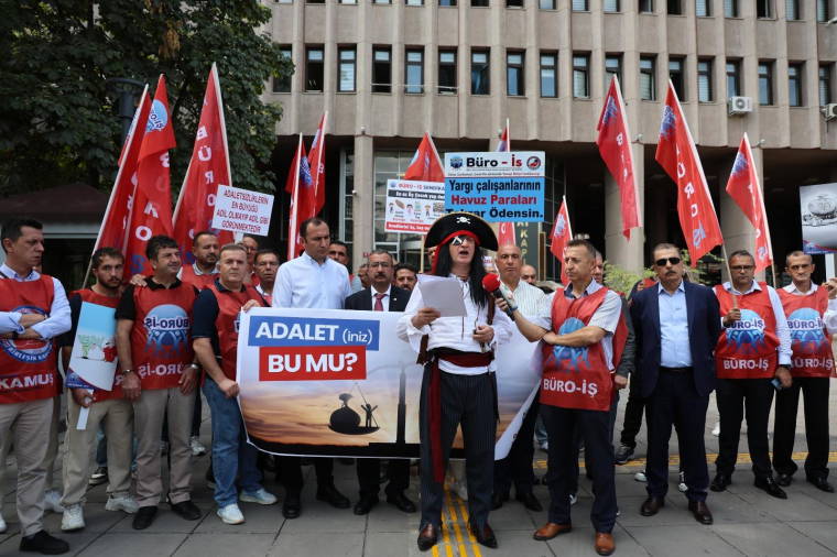 Büro-İş Sendikası, dün adli yılın başlangıcında Ankara Adliyesi önünde adliye çalışanlarının koşullarına ilişkin basın açıklaması yaptı.