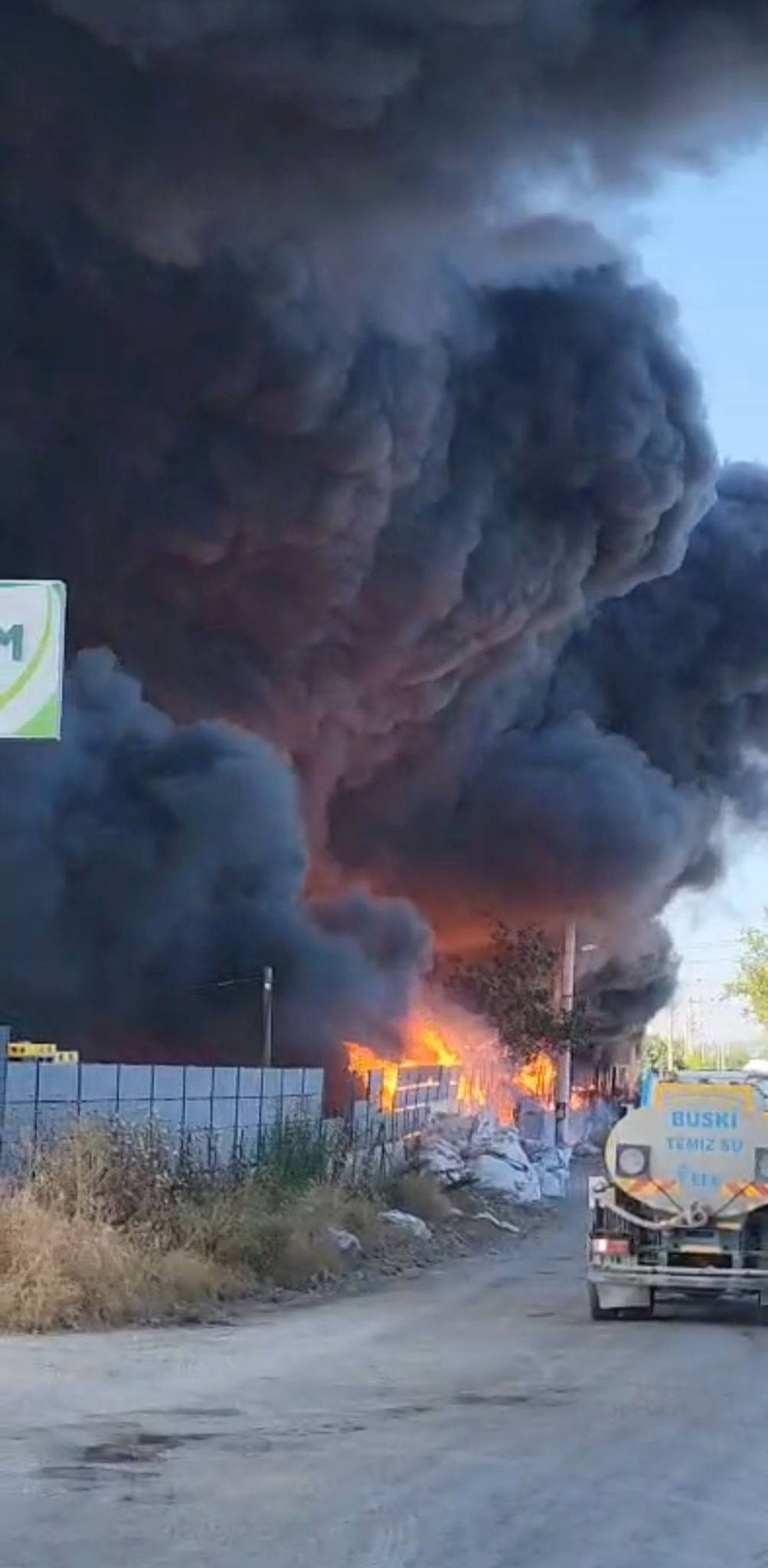 Alevlerin yükseldiğini gören işçilerin ihbarıyla bölgeye itfaiye ve polis ekipleri sevk edildi. Polis çevrede güvenlik önlemi alırken, itfaiye ekiplerinin yangını söndürme çalışmaları sürüyor.