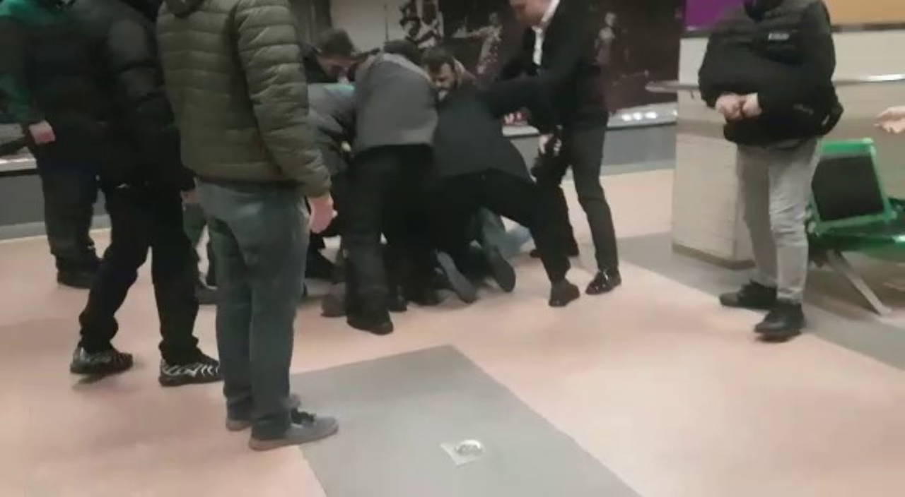 Olay yerine gelen güvenlik görevlileri ve diğer yolcular kavgayı ayırmaya çalışırken o anlar cep telefonu kamerasıyla kaydedildi.