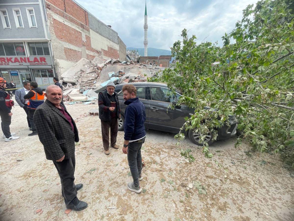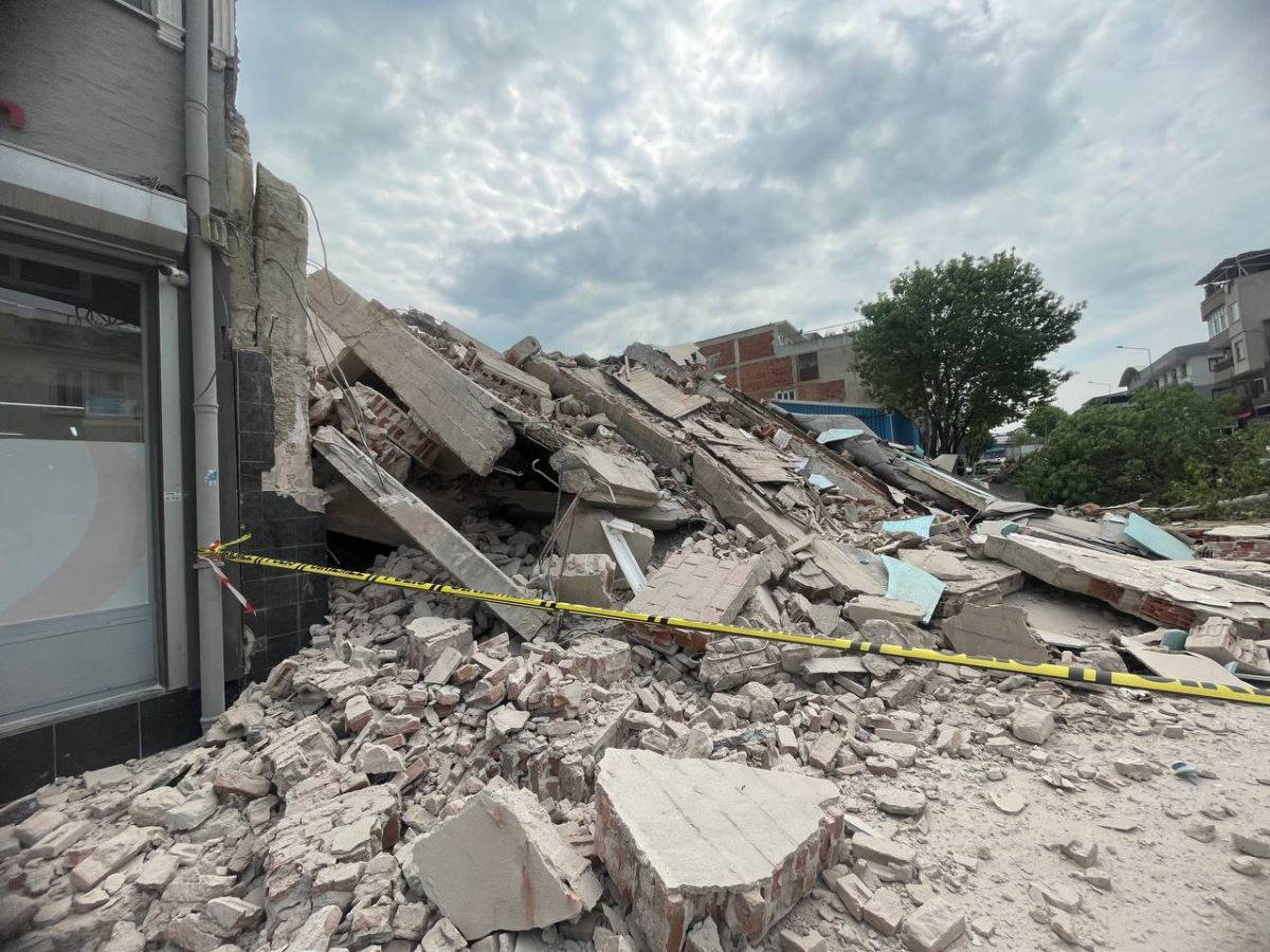 Bu sırada yıkılan 4 katlı binanın enkazı caddeye devrildi. Yıkılmanın etkisiyle bir ağaç, otomobilin üzerine düştü. Olayda 3 otomobil zarar gördü.