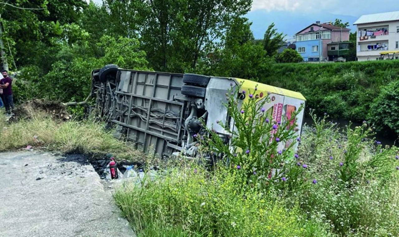 Manevranın etkisiyle devrilen otobüsteki sürücü ve 9 yolcu yaralandı.