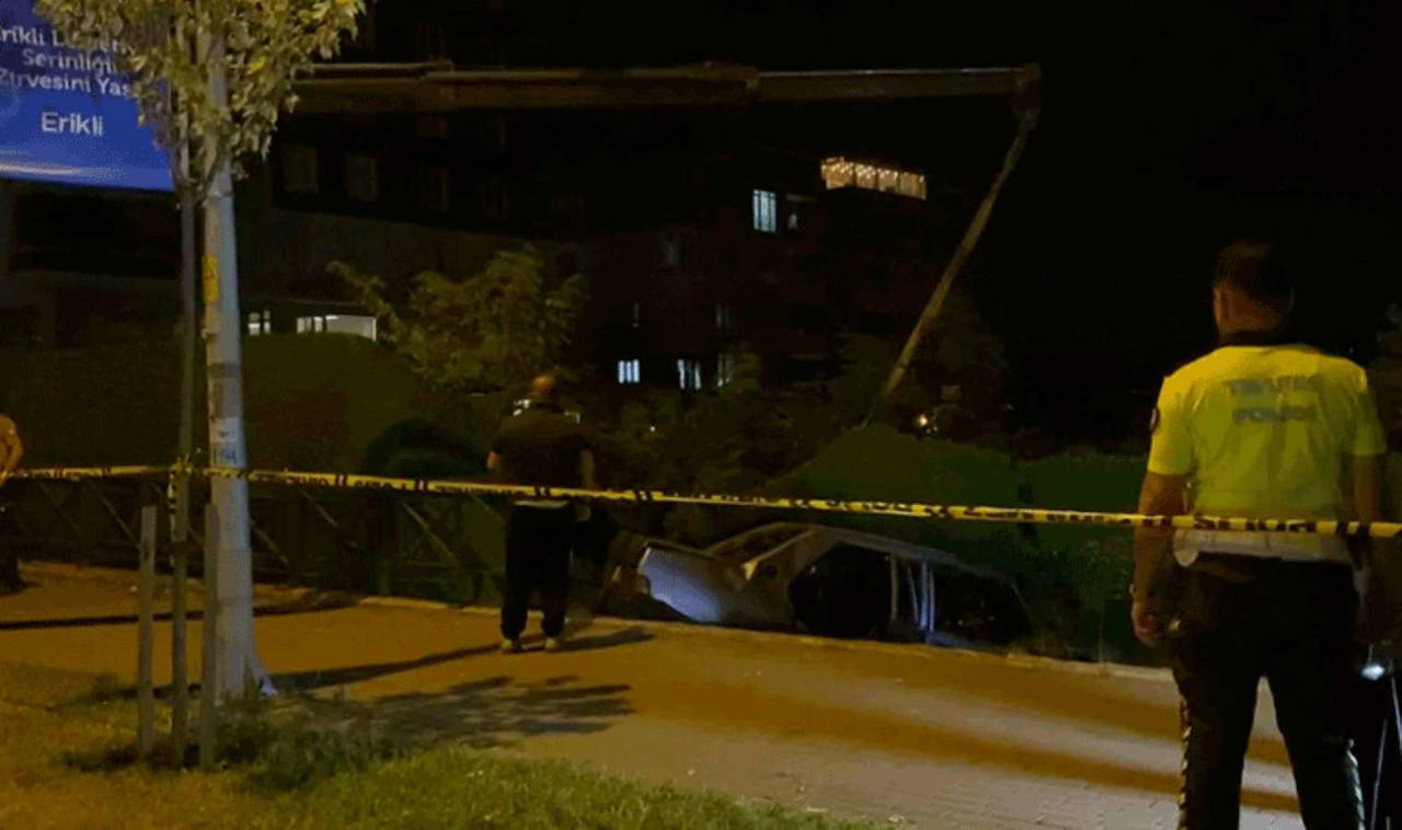 Metrelerce savrulan otomobil önce kaldırıma çarptı ardından yol kenarındaki demir korkulukları parçalayarak inşaat alanına düştü. Kazada sürücü ile otomobilde bulunan Serdar Sezgin ve Onur Karaorman otomobilde sıkıştı. Olayı gören çevredekiler yaralıların yardımına koşarken, durumu 112 Acil Çağrı Merkezine bildirdi.