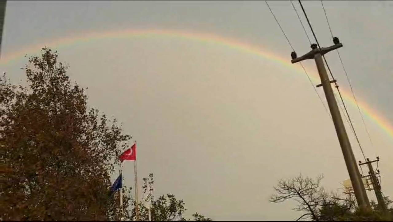 Gemlik ilçesinde yağışın ardından çift gökkuşağı ortaya çıktı. Oluşan çift gökkuşağı, Gemlik’in birçok noktasından gözlemlenirken özellikle sahil bölgesinde kartpostallık görüntüler oluştu.