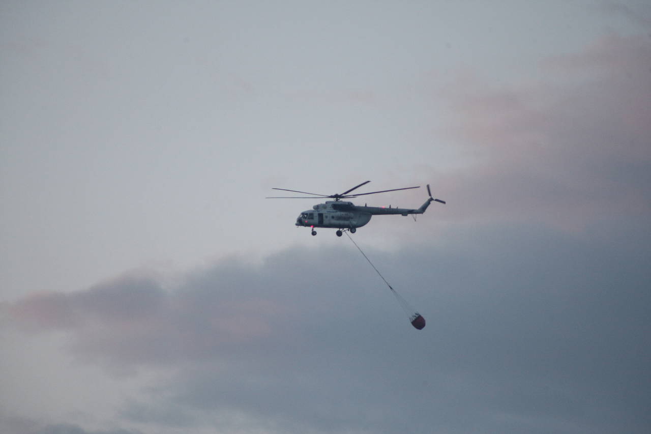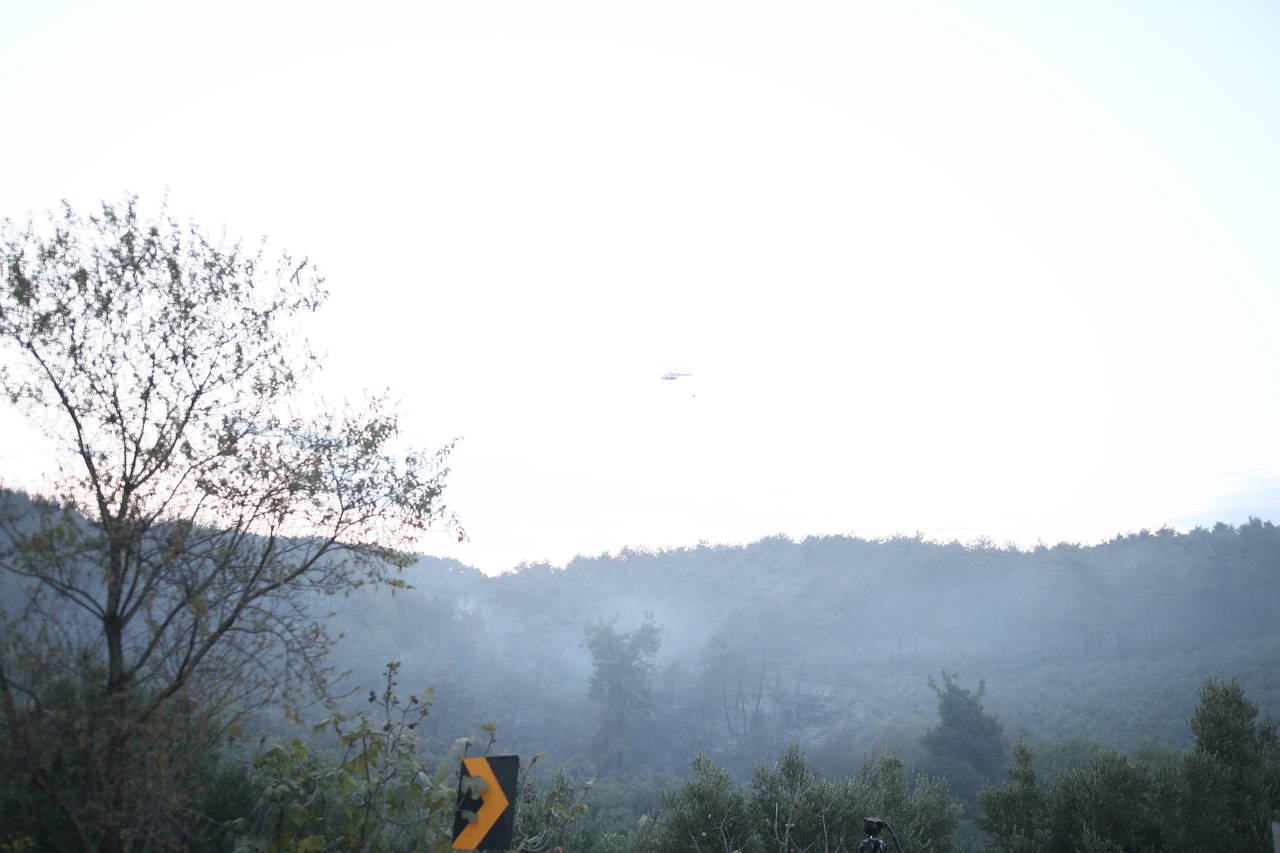 Rüzgarın etkisiyle büyüyen yangına günün ilk ışıklarıyla birlikte ekipler yangına havadan helikopterler ile müdahale ediyor.