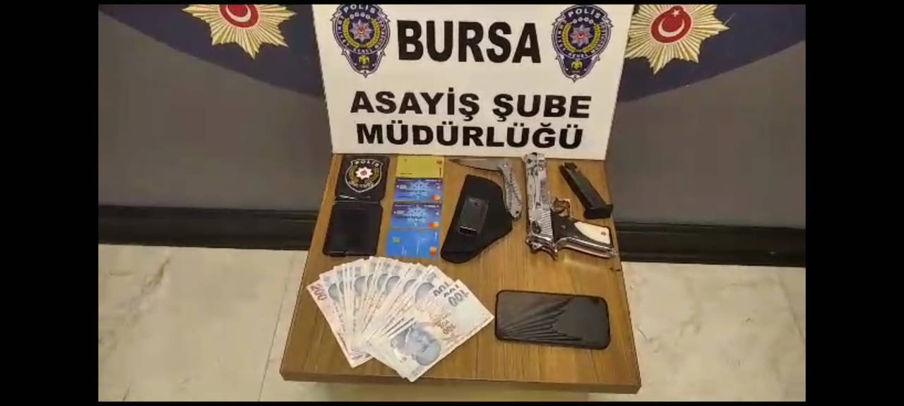 Şüphelinin evinde yapılan aramada, ruhsatsız bir tabanca, başkasına ait sahte polis kimliği ile kadınlardan aldığı tahmin edilen bir miktar para ele geçirdi.