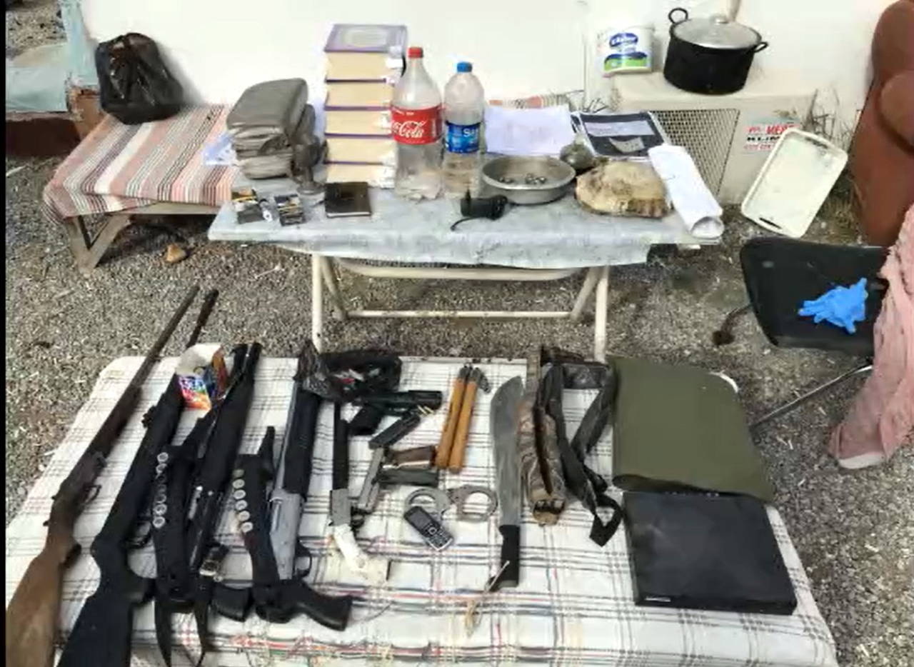 Koyuncu'nun evinde yapılan aramalarda ruhsatsız tabancalar, pompalı tüfekler, pala, mınçıka, kelepçe ile tarihi eser olduğu değerlendirilen sikke, yüzük, Kur’an-ı Kerim ele geçirildi.