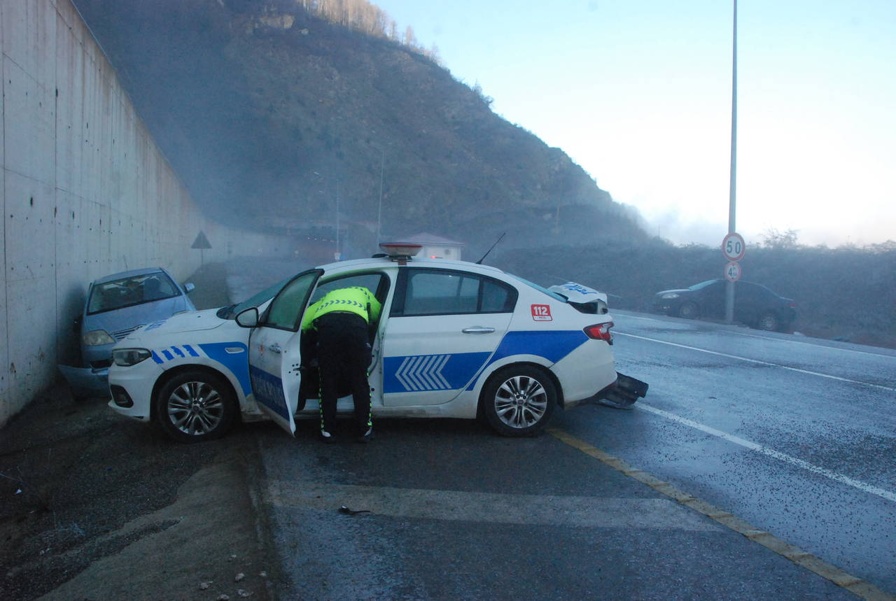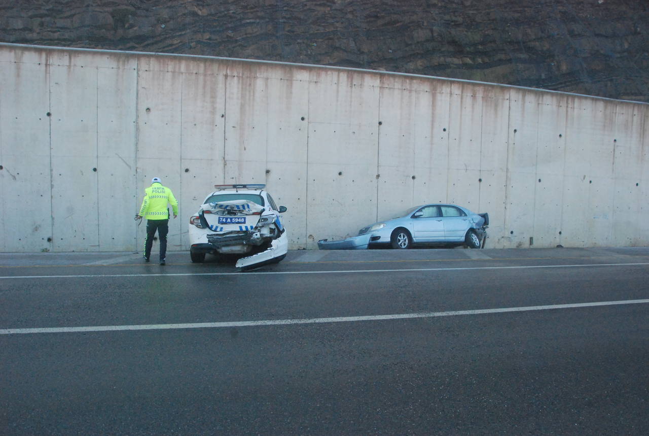 Haber verilmesi üzerine trafik ekibi, kaza yerine gelerek işlem yaptı. Bu sırada Besim Coşkun yönetimindeki 74 BC 066 plakalı otomobil de kayarak trafik ekibinin aracına arkadan çarptı. Kazada araçta bulunan trafik polisleri S.Ç. ve K.K., hafif yaralandı.