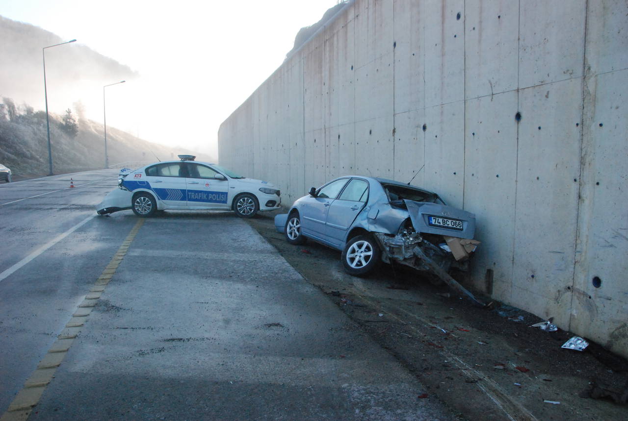 Karabük yönüne giden Gökhan Gökkaya'nın kullandığı 74 AAV 863 plakalı otomobil, tünel çıkışında buzlanma nedeniyle kayarak yol kenarındaki elektrik direğine çarptı.