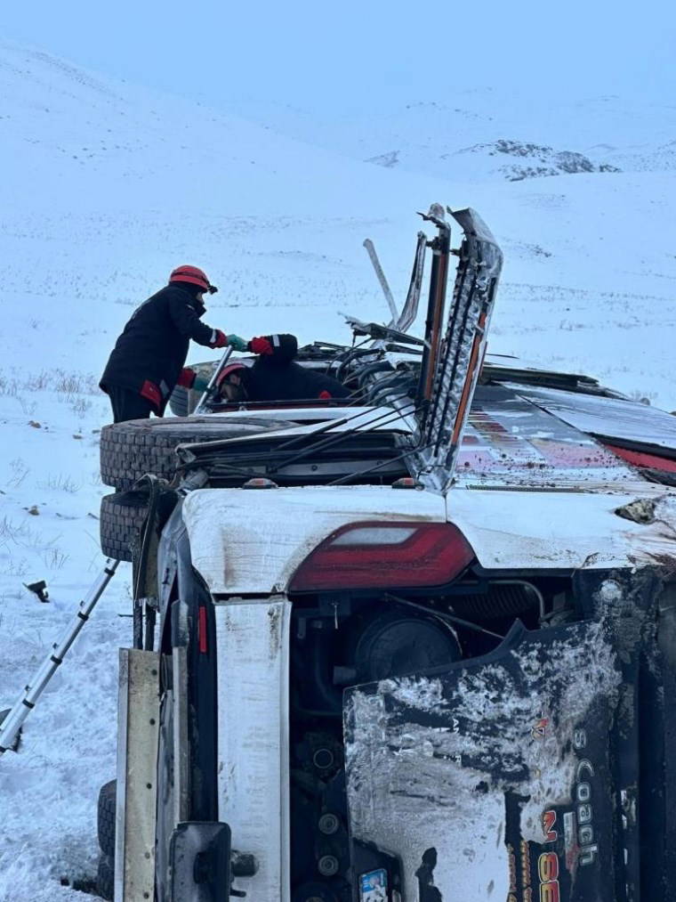 Kaza, saat 07.00 sıralarında Ağrı’nın Doğubayazıt ilçesinde çimento fabrikası önünde meydana geldi. Alınan bilgiye göre, buzlanma nedeniyle kayganlaşan yolda sürücünün direksiyon hakimiyetini kaybetmesi üzerine otobüs devrildi.