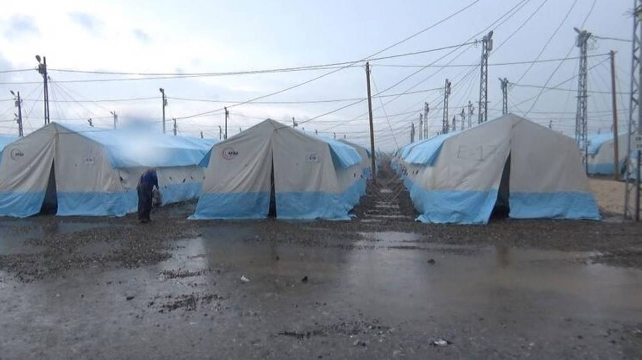 Kentte sabah saatlerinden itibaren etkili olan sağanak yağışla birlikte bazı çadırların çevresinde su birikintisi oluştu.