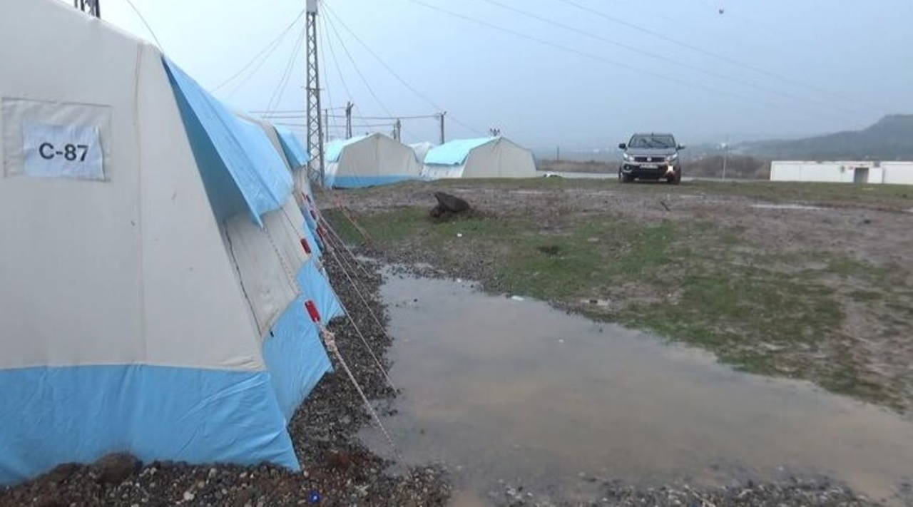 Yağış etkisini sürdürürken, belediye yetkililerinin çadırları gezerek depremzedelerin durumunu kontrol ettiği aktarıldı.