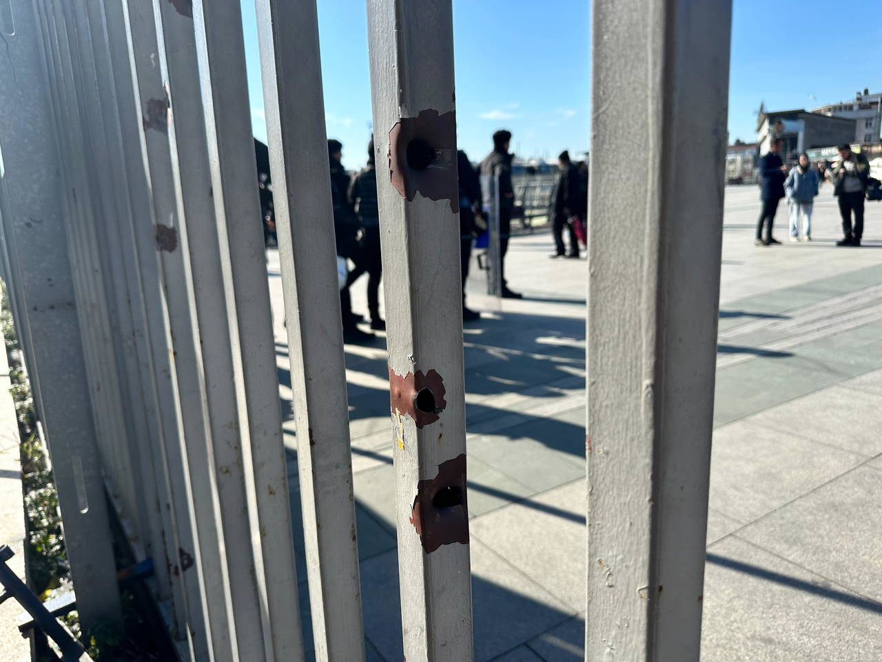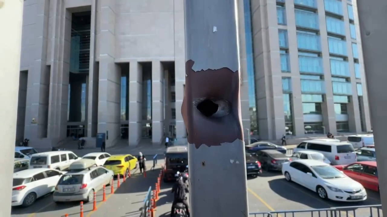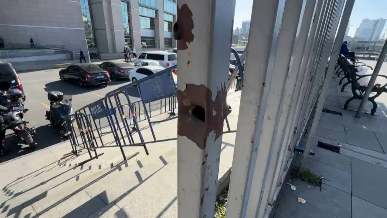 Öte yandan adliyenin C Kapı girişindeki demir kapının iki tarafında da kurşun izlerinin olduğu görüldü.