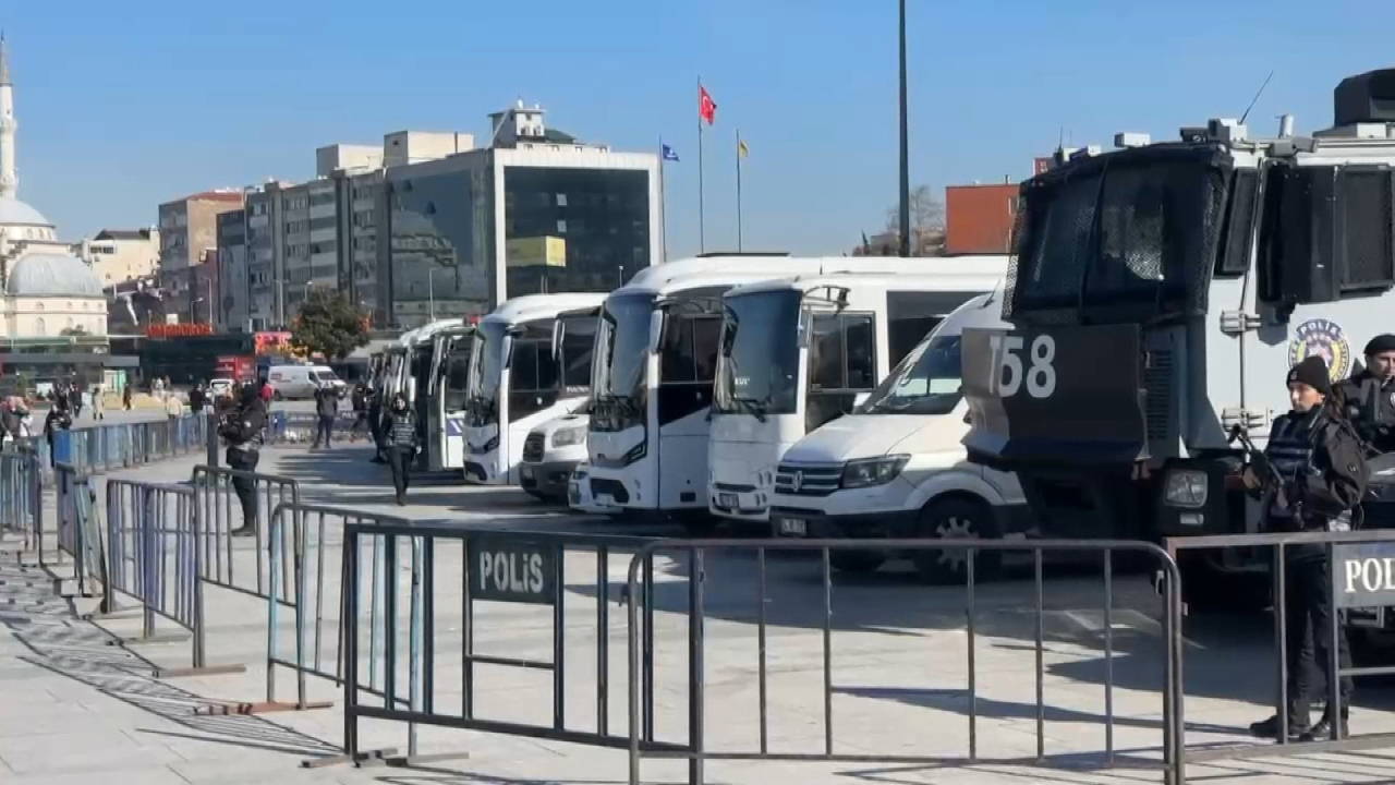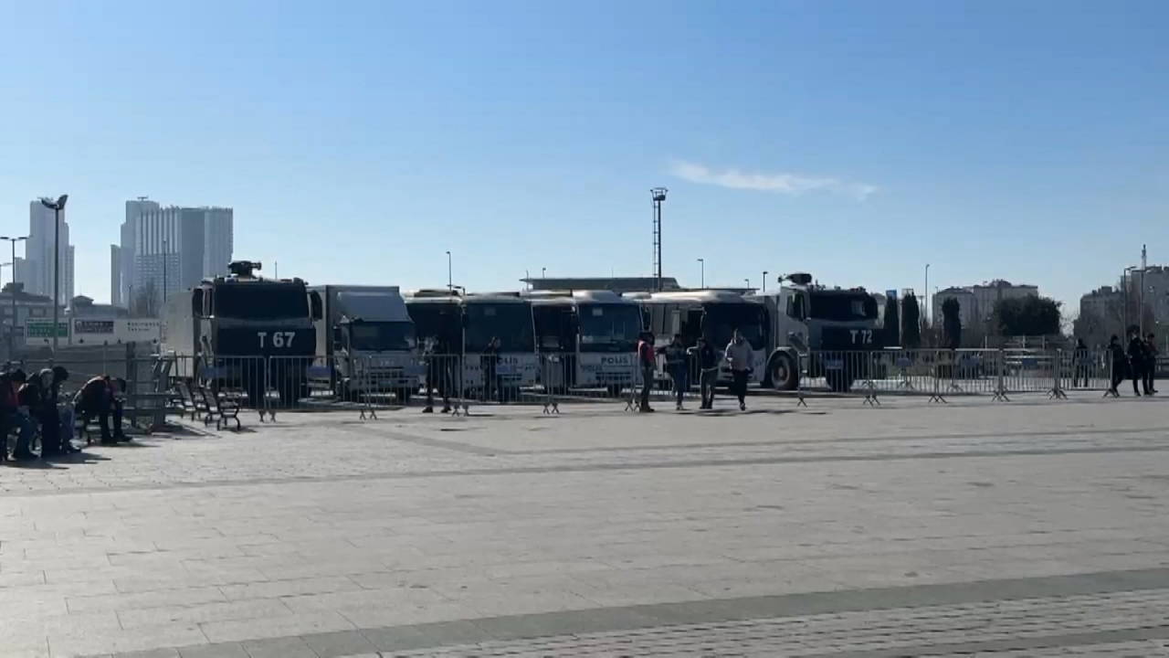 Adliye önündeki meydanda çevik kuvvet polisleri nöbet tutarken, TOMA ve polis zırhlı araçlar da hazır bekletildi.