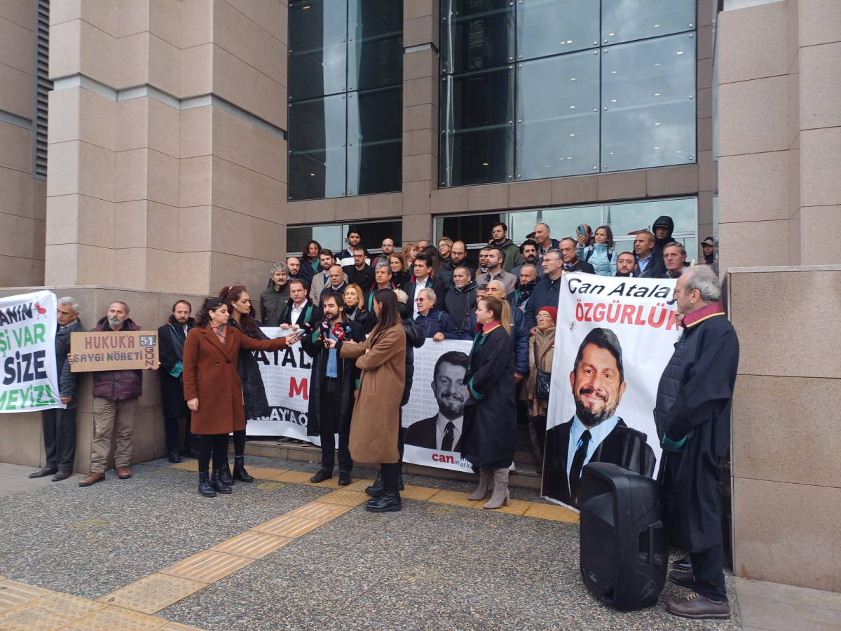 İstanbul Adliyesi önünde açıklama yapan Can Atalay'ın arkadaşları ve meslektaşları tahliye çağrısında bulunarak, "Karar çıkana kadar buradayız" dedi.