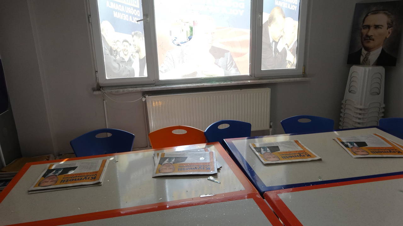 Caddede aynı yerde faaliyet yürüten AKP'nin Cevatpaşa ve İsmetpaşa mahalleri seçim irtibat bürosu, kimliği belirsiz kişi veya kişilerin taşlı saldırısına uğradı.