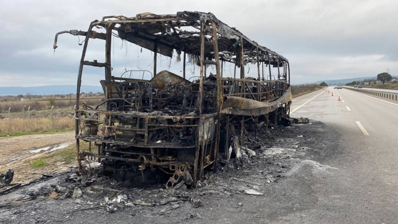 Yangın sonrası yolcu otobüsü kullanılmaz hale geldi.