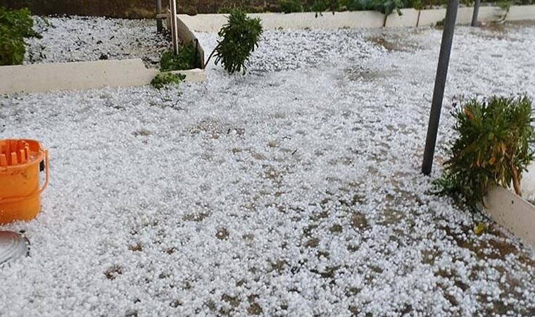 Ayrıca kentte etkili olan dolu yağışı evlerin bahçelerini beyaza bürüdü.