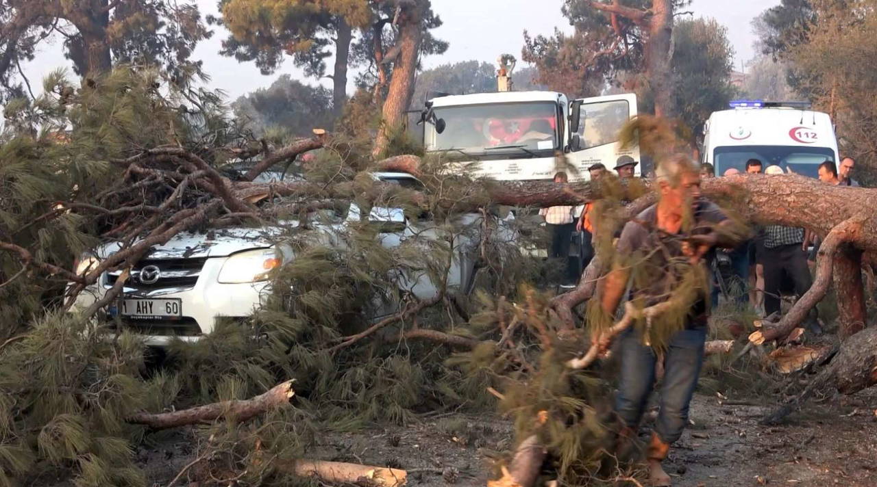 Olay yerinde ilk müdahalesi yapılan Özkan, bölgedeki en yakın hastaneye kaldırılırdı. Yangın söndürme aracı ise, dev ağacın altında adeta kullanılamaz hale geldi.
