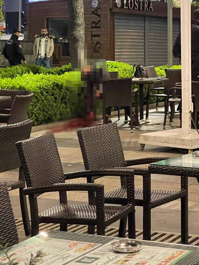 Kanlar içinde oturduğu sandalyeye yığılan kadın, olay yerinde yaşamını kaybederken, şüpheli de silahıyla polis noktasına giderek teslim oldu. Olay anı ise çay bahçesindeki güvenlik kameralarına yansıdı.