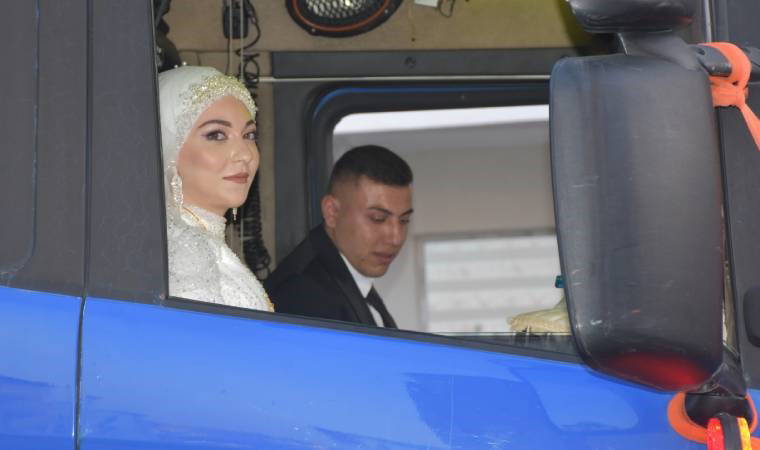 Kentin işlek caddelerinde gelin arabası olarak süslenmiş TIR çekicisi ile tur attı. Çekici içinde gelin ve damadı görenler, şaşkınlık yaşadı. Bir süre kentte çekici ile dolaşan gelin ve damat, daha sonra düğünlerinin yapılacağı salona geçti.