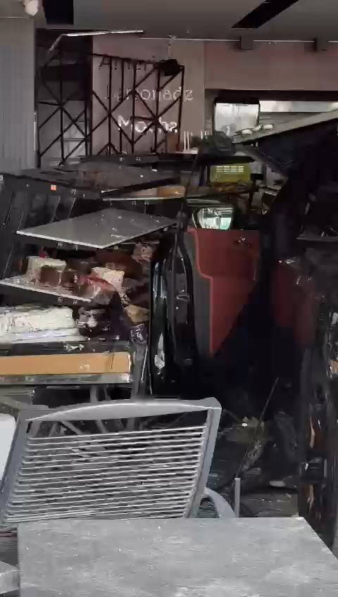 Kazada sürücü ile birlikte pastanedeki 5 kişi hafif yaralandı. Kaza anında pastanenin içinde yaşananlar cep telefonu kamerasıyla görüntülendi.