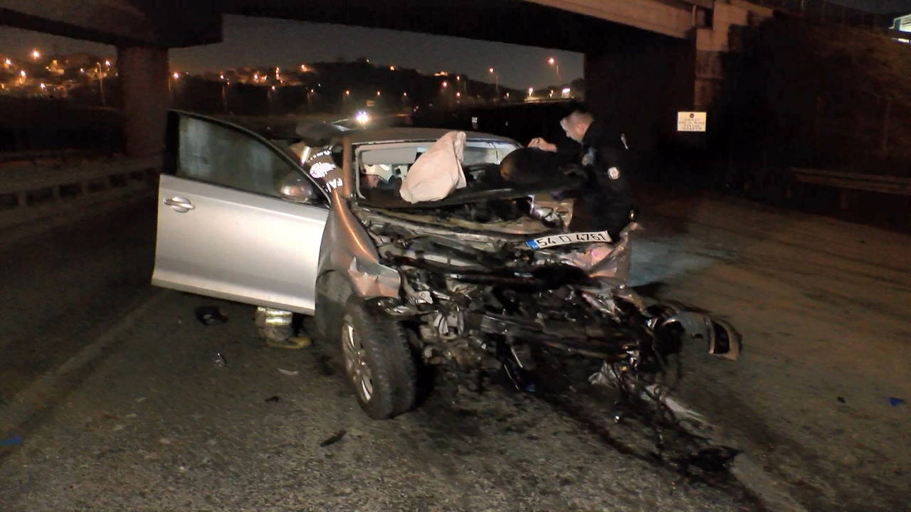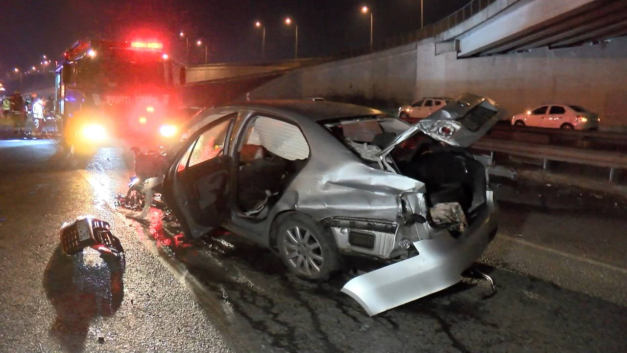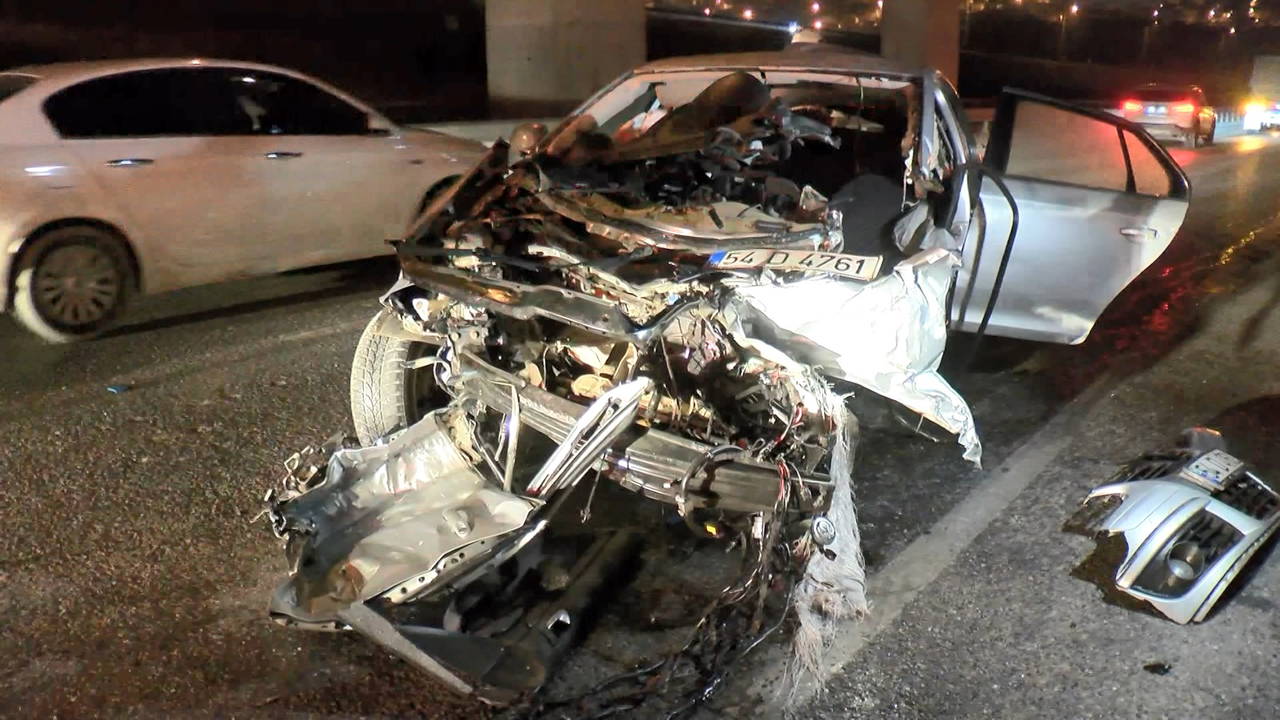 Çarpmanın etkisi ile motor kısmı kopan otomobil hurdaya döndü. Otomobilde bulunan 2 kişi yola savrulurken, sürücü otomobil içinde sıkıştı.
