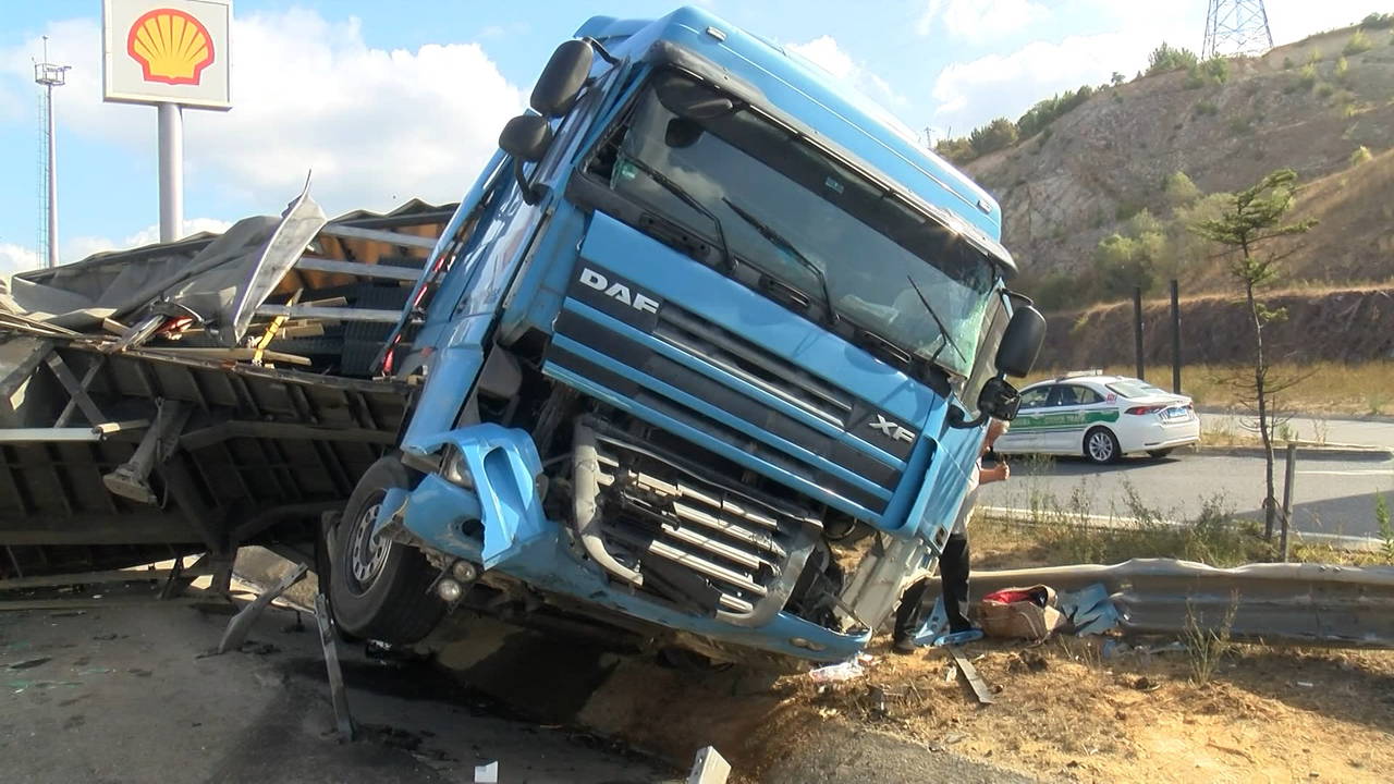 Kuzey Marmara Otoyolu Ömerli mevkiinde, saat 09.30 sıralarında Bulgaristan plakalı Milev İvan Grozev yönetimindeki bahçe teli yüklü TIR Edirne istikametine ilerlediği sırada şoförünün direksiyon hakimiyetini kaybetmesi sonucu yol kenarındaki bariyerlere vurarak ters döndü.